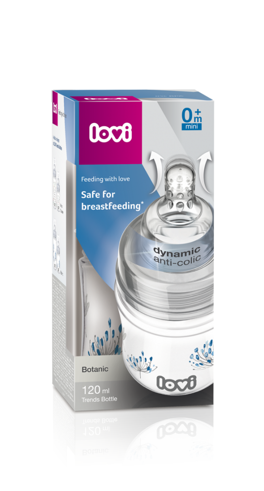 LOVI Trends cumisüveg, amely a baba anyatejjel történő etetésére lett kifejlesztve. Az üveg körüli minta effektív tervezése a legújabb trendek szerint lett megtervezve. Egyedi Dinamikus etető cumival® van felszerelve, amelynek vékony, megnyúló a végződése, kemény és formázott az alapja, valamint SUPERvent légáteresztő rendszerrel lett kifejlesztve. Két dizájnban elérhető: Indian Summer és Botanic. A cumisüveg kompatibilis a LOVI mellszívókkal.